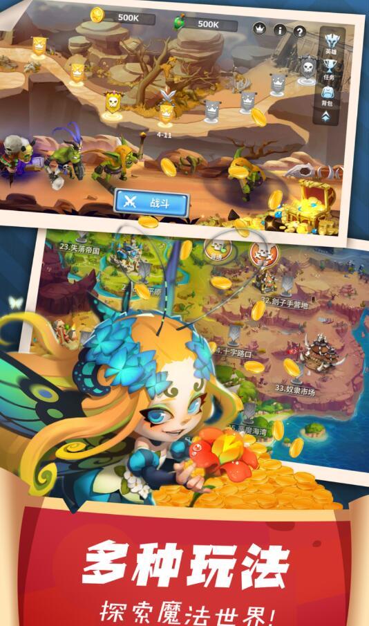 2.上百种不同的关卡任务,和几十种不同属性的作战英雄供你选择,体验不同英雄作战体验;