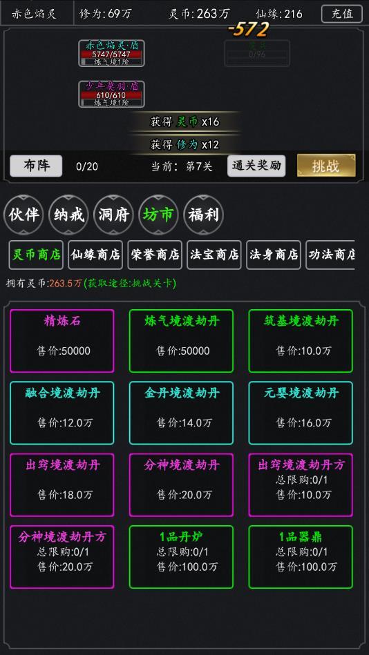 以文字剧情的方式为你呈现一个不一样的修仙世界,支持进行物品的购买以及boss的挑战,玩法多样;