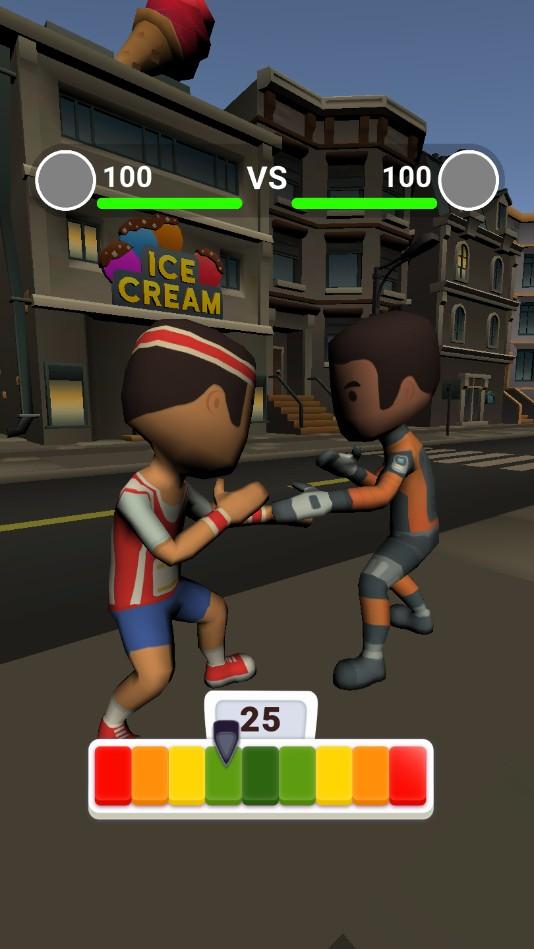搏击竞技场是一款非常有趣的街头搏击主题的动作类型游戏,在这款游戏中你作为一名功夫了得的街头搏击手艺人,用硬朗的拳头将敌人打倒就是你的浪漫,你需要在合适的时机出拳以获得最大的能量,你和对方都有一定的生命值,谁先用完谁就输掉比赛,你有信心赢下来吗。