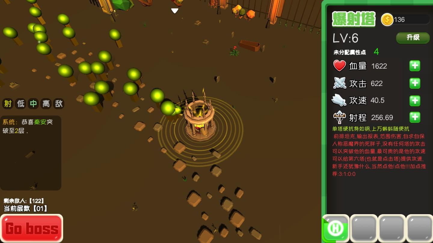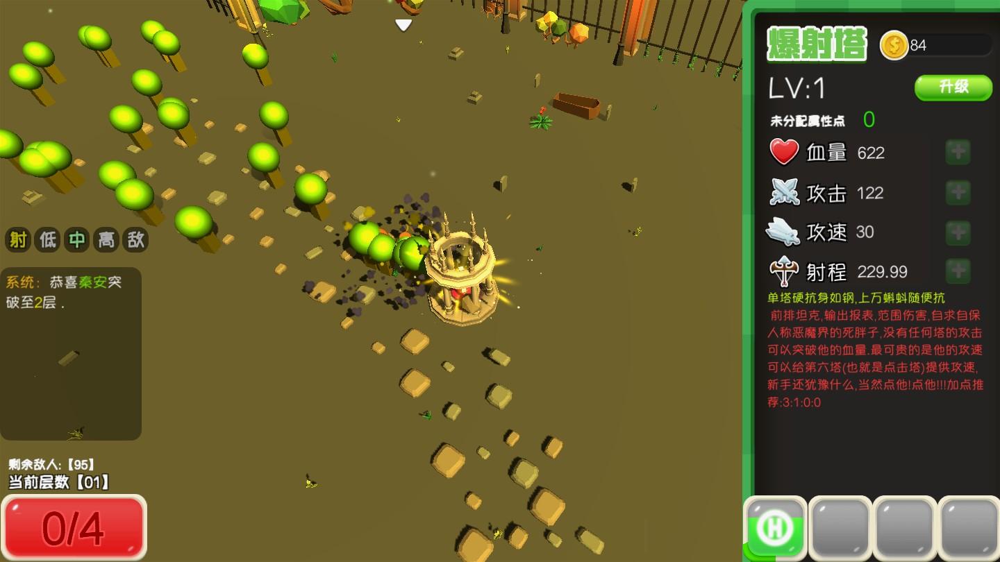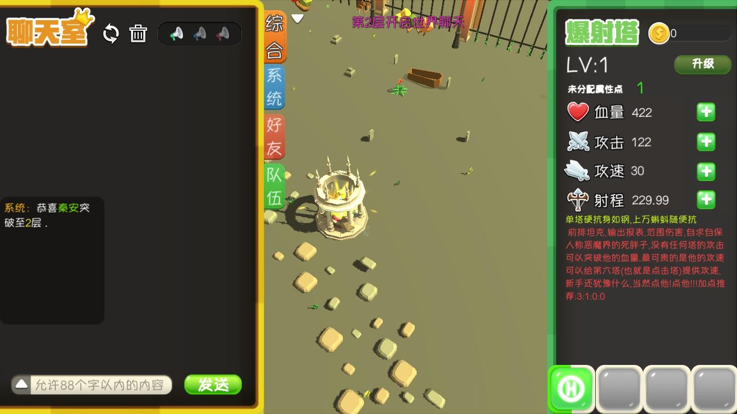 血量、攻击、攻速、射程是你的防御塔的基本属性,你可以随意加点;