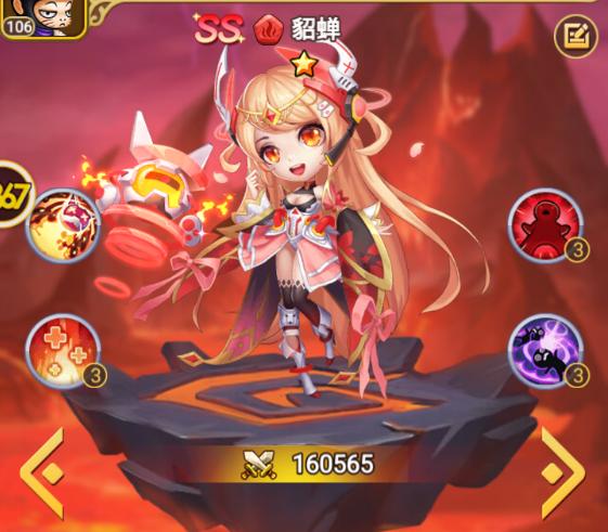 英雄三:貂蝉是个综合能力最强的辅助,可以降低敌方攻击力的同时提升友方的命中率,攻击时降低敌方闪避并回复友方百分比生命以及血量降低时,回复友方能量以及高概率的眩晕,使貂蝉在该阵容中尤为关键。