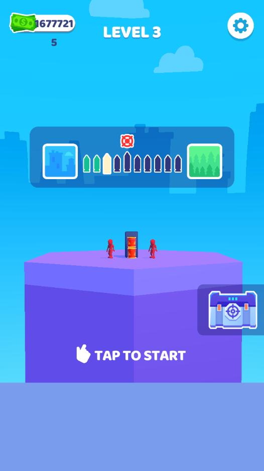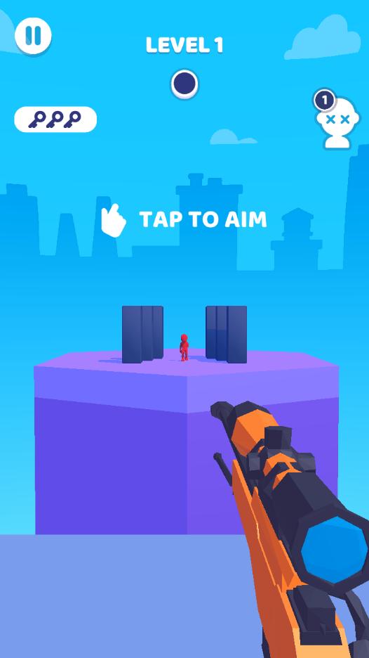 这款游戏玩法十分简单,你只需要按住屏幕就可以移动你的瞄准镜,松开就可以发射一颗子弹;