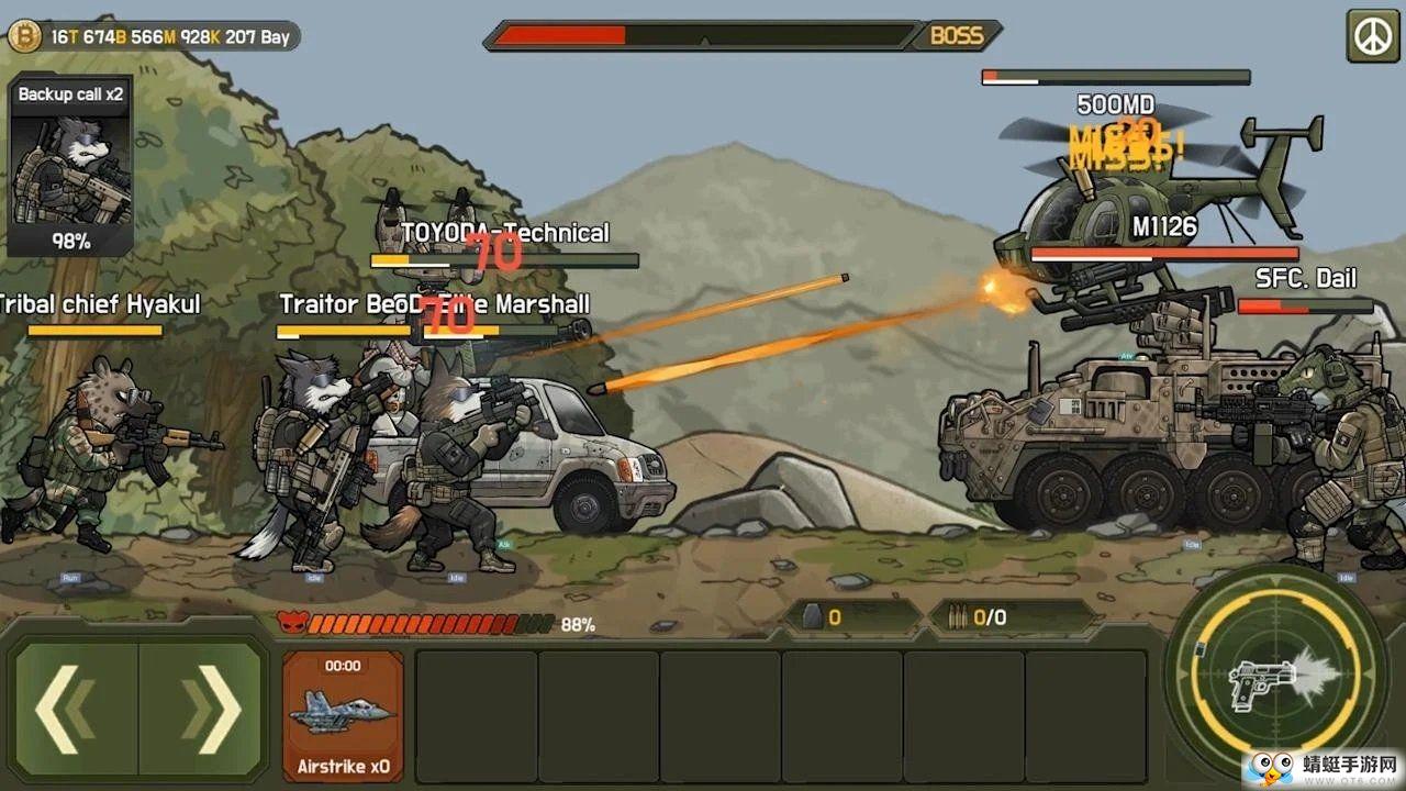2.带着你的动物士兵,通过资金招募他们,挑战更多的关卡,解锁更多的玩法;