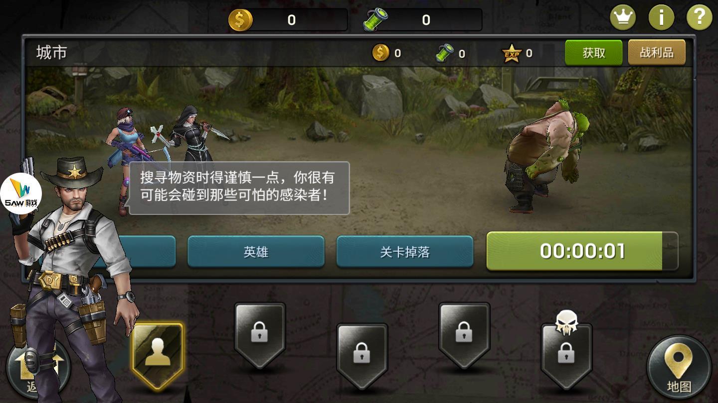 游戏中灵活的冒险战斗,策略的战术配合下,招募所需的英雄角色与僵尸角逐挑战;