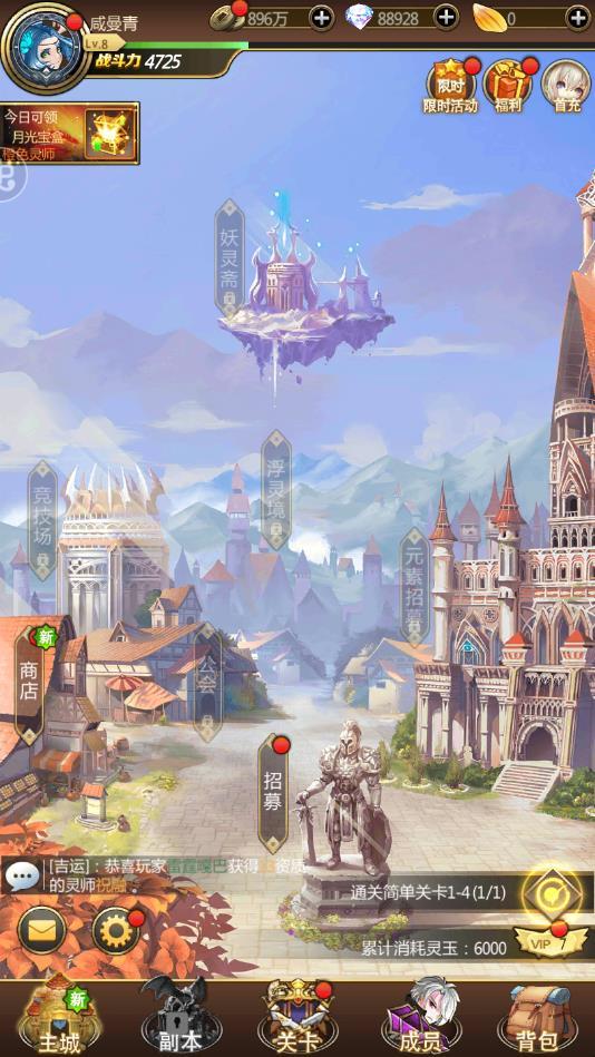 游戏充值比例调整为1:1000,首充送橙武卡牌,每天上线送登录礼包等多种福利。