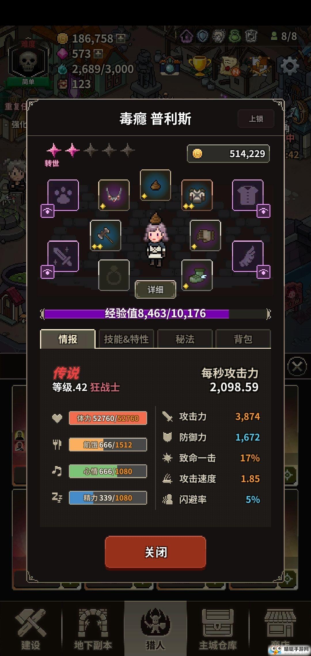 开局最好刷号,出狂战士,我刷的是完美,然后出4-6-8个,总的三个地图,一个地图2个-4个狂战刷,这样效率很高,我是这么发展的,首先速度第2-3个难度(主要就是英雄转生加属性),然后你回第一个难度打boss出材料,做吸血装备,这样你不用高转就有吸血输赢,刷图很轻松,相对来说,如果你4-6个号都做了,那么对于后面来说,那是既轻松又实用(狂战士主要攻击,所以追求吸血这属性就可以了),然后后面再做终极装备。
