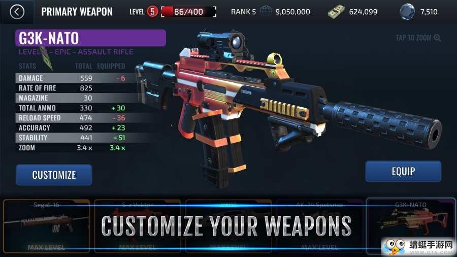 武器与改装——从狙击枪到突击步枪再到小型冲锋枪,总共有30多种独特武器供君挑选。选定了最称心的武器之后,你可以对瞄准器,消音器,握把,枪筒,枪托等影响武器性能的重要组件进行改装。你还可以进行纯粹追求美感的改装。每款武器都配有大量的皮肤,一定会让你眼花缭乱。