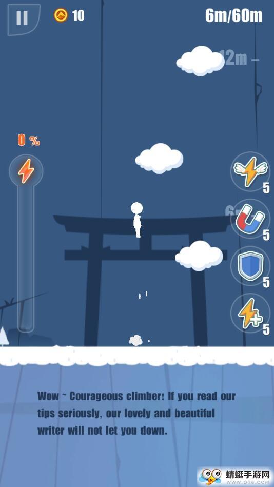 玩家要尽自己最大的努力进行攀爬,当火柴人攀登到了山顶,玩家就能够观察这里美好的景象,对自身也是一种满足。