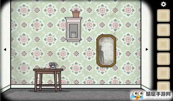 第一面墙上方花盆里的蜡烛可以拾取,拿起电话,听筒里出现一堆字母。可以当拼词游戏玩,不过游戏中其他地方也有提示,稍后再说。