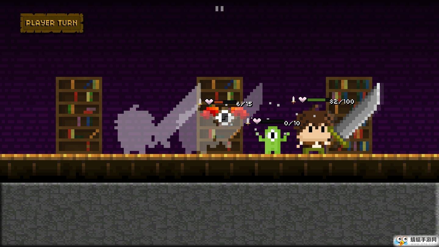 如果英文过关的话,游戏的剧情设定还是值得欣赏的,当中还会不时穿插一些新手教程。整个冒险过程被分成了多个章节和若干个关卡,每一个关卡中玩家需要经历三个对战阶段,遇到的敌人也是形形色色,外型设定大部分都是叫不上号的。战斗开始后可以看到画面下方提供了一个放置了骰子的功能栏,点击骰子得出的点数就是你本次攻击的伤害值,不过这还没完,为了增加游戏性,在决定攻击之前玩家可以无限制地投掷点数,伤害力也会不断累计,运气好的话可以将伤害力堆的比敌人的血量还高。