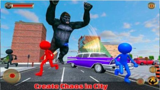 3、简易的操作控件,不管是谁都能快速上手,让玩家们亲自化身为大猩猩,随意的在城中行走。