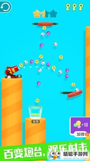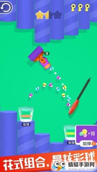 1、海量五颜六色的球球们等着你发射哦,手指点击屏幕就可发射;