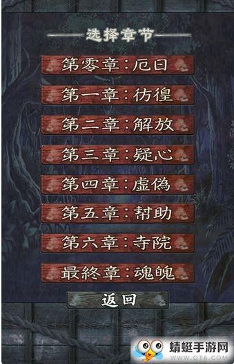 关键点为坐化的僧人场景,先点僧人,再点击僧人后方的铁门,尸骨倒下,女主搭话,再次点击铁门,进入下一章。