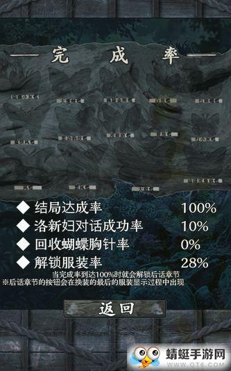 蝴蝶回收率,这个是通关一次之后才能出现,从第一章到最终章,每章两只蝴蝶,共14只