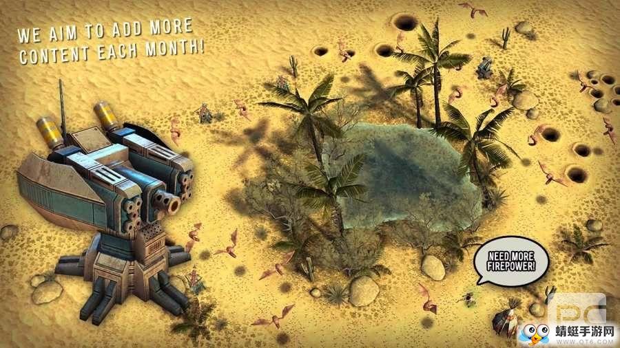 故事讲述世界已经被僵尸病毒所侵蚀,人类只能聚在一起守护最后一片家园,玩家将饰演一位救世英雄,在末日的时期,人类无法居住在被僵尸袭击的城市,所以只有躲避到沙漠地区的安全区来,毕竟有茫茫沙海的阻挡,这里的僵尸会少很多。玩家要做到的就是建立更多的防御武器来防止僵尸的袭击
