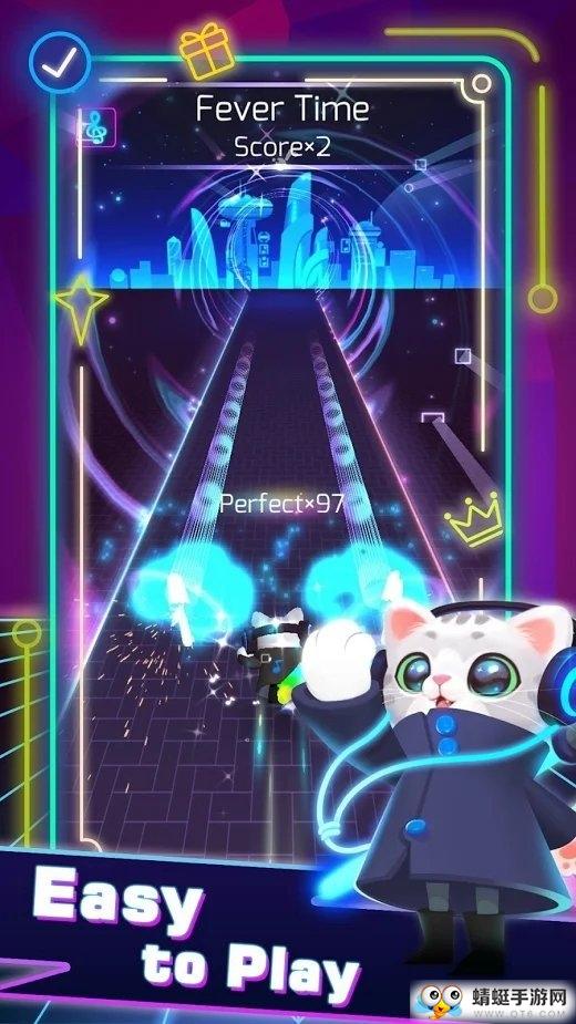 音速猫是一款将美妙音乐和快节奏完美融合的游戏,你只需要听着美妙的音乐,动动手指,就能有敲畅快的游戏体验!