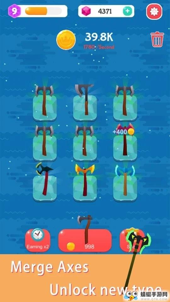 2、增加更多的空位、不断扩充斧子品种,不断合并解锁更多闪亮又锋利的新斧子;