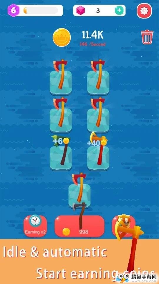 3、购买斧子,帮助更高级的斧子赚钱更快,升级以增加更多位置。