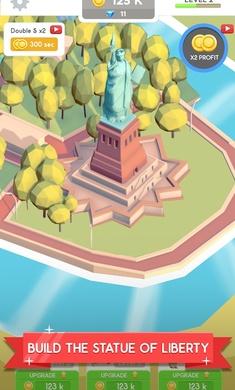 游戏最终的目的是玩家通过自己勤劳的双手,去建设世界上所有的标志性建筑,成为闲置地标大亨。