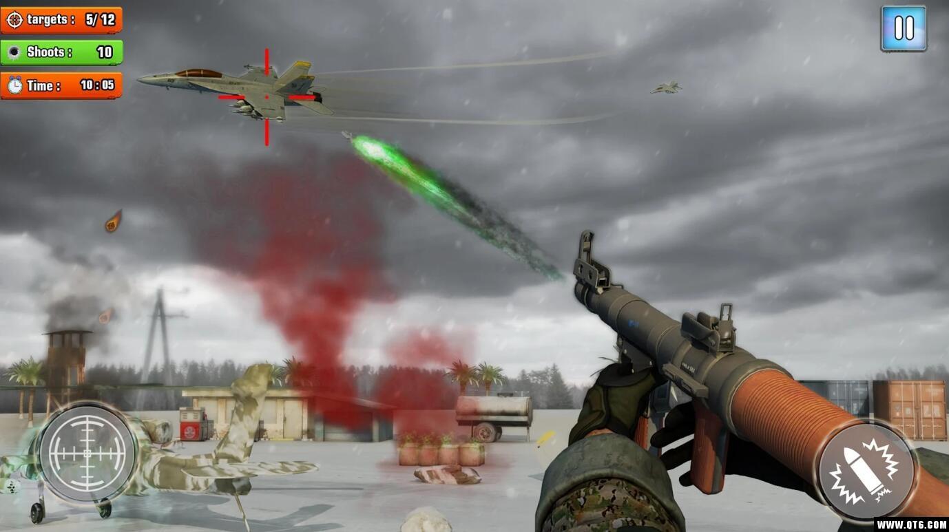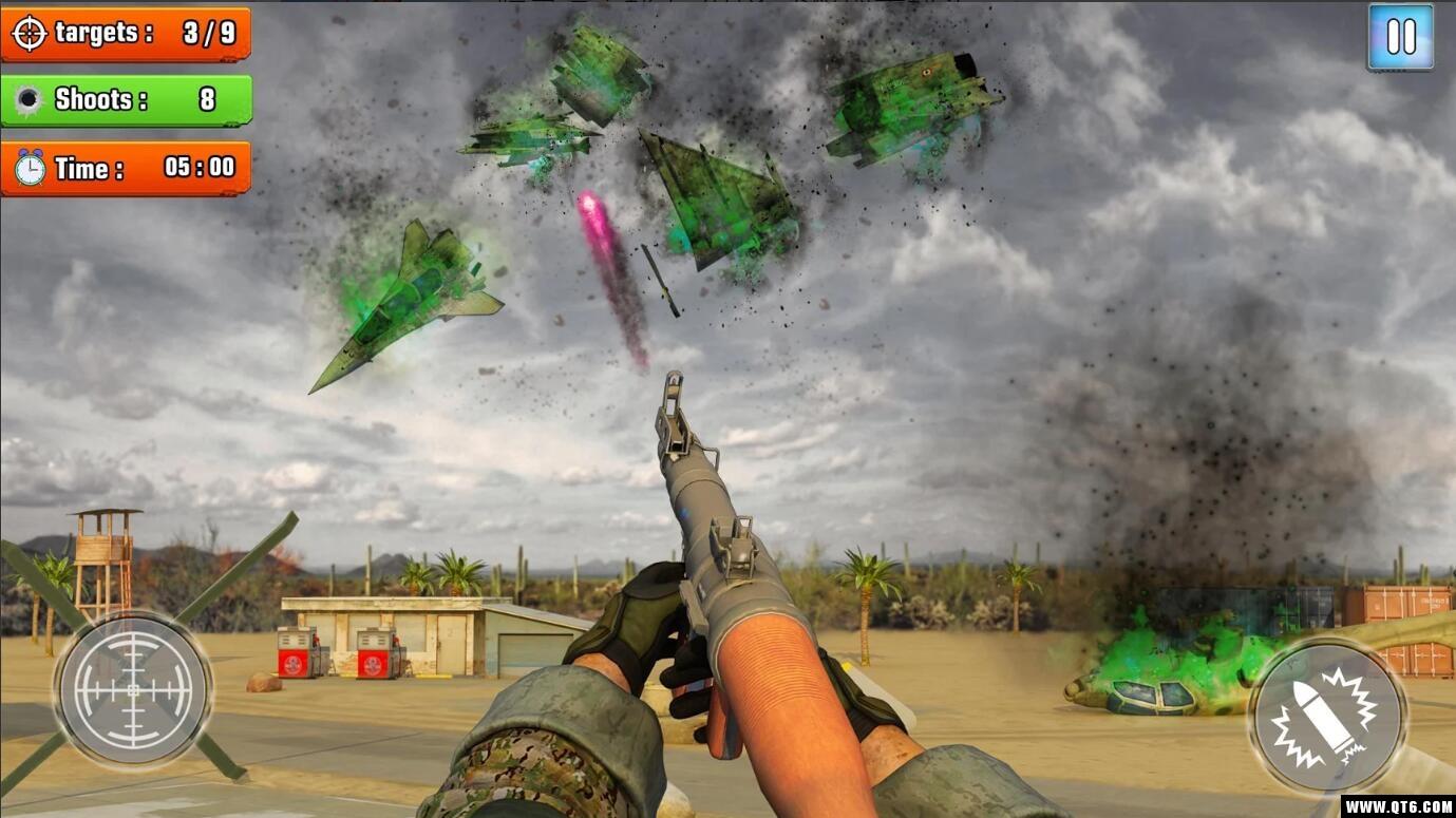 通过点击枪支射击图标逐个拍摄所有战斗机