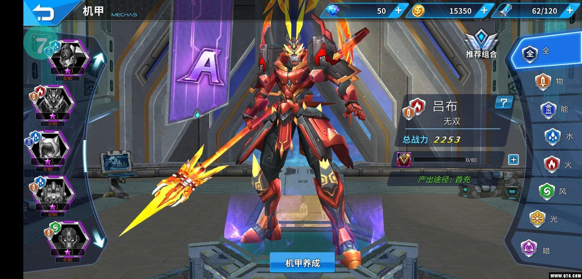 同时游戏中活动、任务、精英副本、抽卡均可获得机甲,机甲数量到了中后期会非常多,这里推荐一套PK比较实用推图可以的阵容,最重要是获得比较简单:吕布、猴子、盖坦。