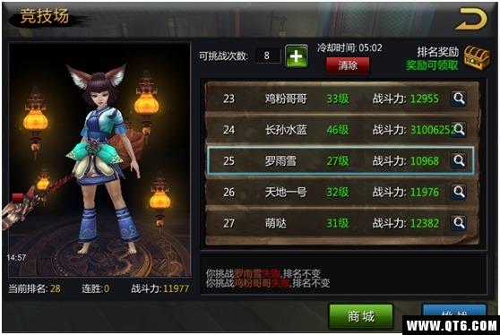 竞技场开启等级为11级,玩家可进入竞技场进行PVP战斗。 点击活动界面进入竞技场: