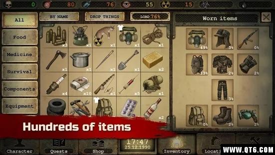 四季变化,苏联的巨大的地图和超过2700个不同的城镇和城市。生存在树林和捕猎动物,但要注意:即使老鼠会严重伤害你!探索的僵尸RPG游戏的荒野!