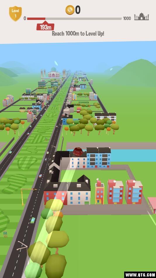 因为前进的方向二边会有一些建筑物的,会影响球的前进,所以我们应该在指针指到中间时,才点击打球,这样才能更远。
