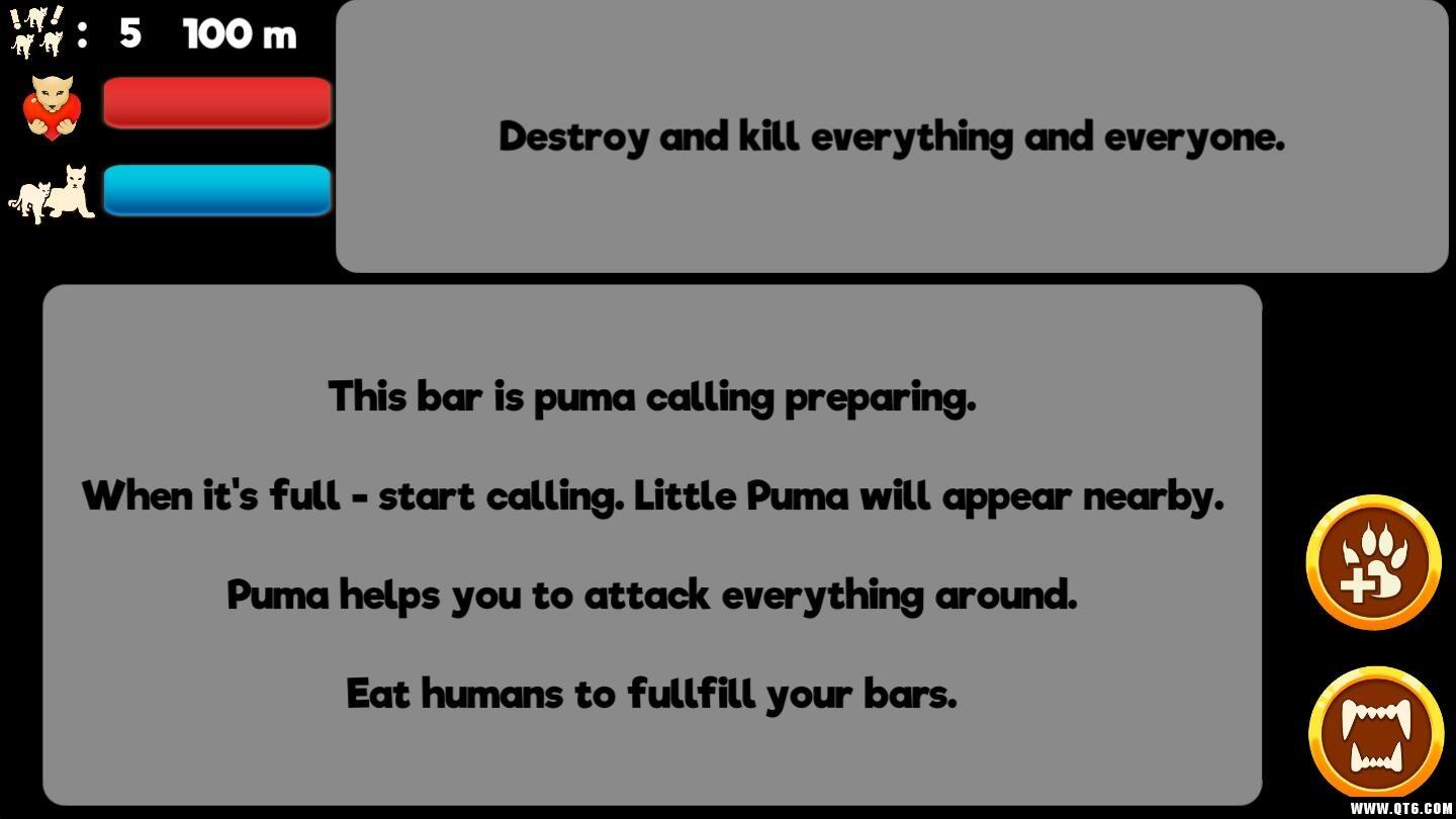 愤怒的美洲狮攻城记是一款模拟类的手机休闲小游戏,游戏采用卡通的画面风格,玩家将在游戏中玩家扮演凶猛的狮子前往市区中进行破坏。独特的游戏玩法,不一样的游戏体验!