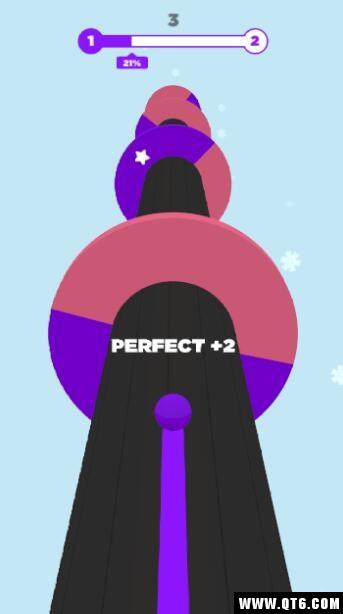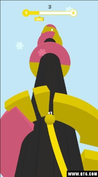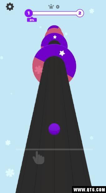 在游戏中,玩家需要操作小球在圆形的跑道上前进,跑道有不规则的旋转柱子,玩家必须撞击想要颜色的柱子才能继续前进!