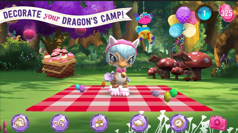 •用有趣的动画装饰和家具装饰您的龙营地。