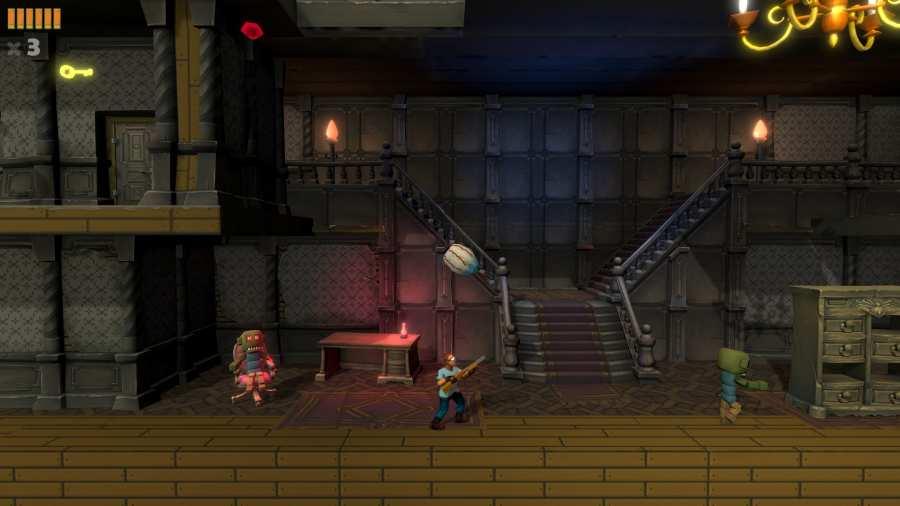 带着平沿帽的家伙,名叫德雷克,乘坐他的车。一切按计划进行,没有任何问题。他不耐烦地去厕所,但在雨中不是很方便。他看到了豪宅。有人偷了他的帽子。似乎是一具僵尸,他跑进豪宅,用猎枪射击僵尸。