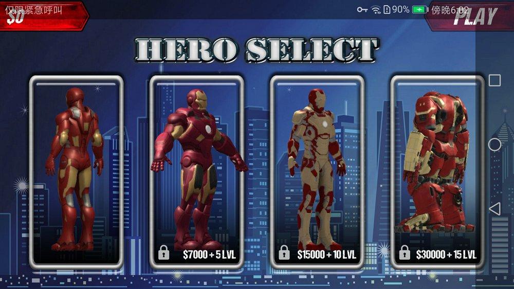 3、解锁关卡与新的角色模型,这些角色模型只是钢铁侠战衣的升级版,他们有着不同的能力与属性加成。