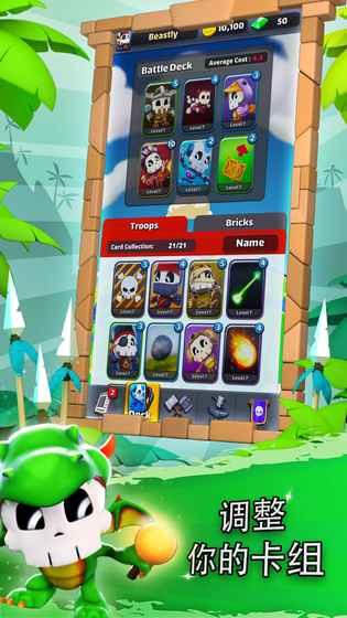 在多变战斗场景中享受在线实时对决带来的快感,调整你的卡组打败嘲讽你的对手,开启宝箱赢取丰厚奖励,尽可能合成高级物品升级你的卡组。