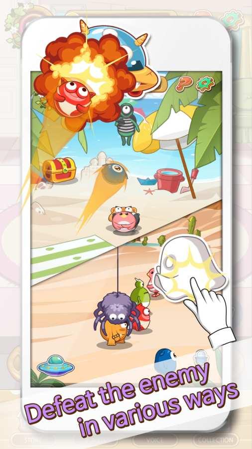 弹射模式:拉动莫莫调整角度攻击外太空敌人。