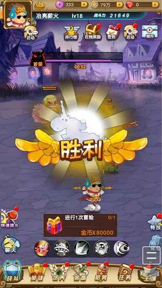 玩家可以通过提升英雄等级、强化英雄技能、装备突破、冒险、试炼、挑战等系统,不断突破自身,挑战强敌、战胜对手、享受不一样的游戏盛宴!关卡以全自动的形式完成,搭配可爱的角色及炫酷的特效,带给玩家独特的体验。丰富的养成系统,多彩的英雄搭配,一幕幕熟悉的身影,让我们在游戏中重现!