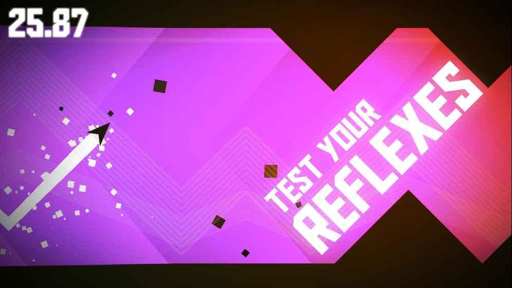 快速跨越扭曲的路径,并生存,只要你可以。你必须避免三角形障碍,同时全速飞行,以保持活着。所以准备好,因为一切都可以在一秒钟内跌倒!