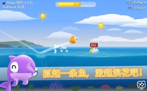 由经典游戏《水果忍者》开发商Halfbrick推出的一款飞行玩法休闲游戏,很像制作精美的打水漂游戏。游戏讲述了6只活泼好动的鱼儿渴望在海洋上空飞跃的故事。要帮助这些鱼儿们飞翔,玩家们只需选好鱼儿后将他们从水中投掷向空中,然后看着它们穿越过云朵,欢快得在海浪间跳跃。