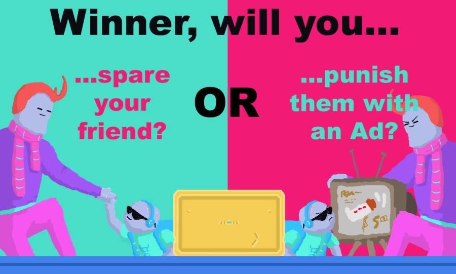 2、击打上方的黄色方块让更重的方块压扁对手;