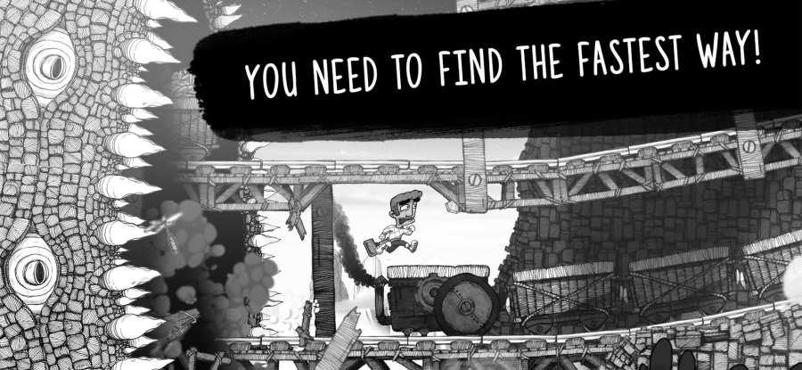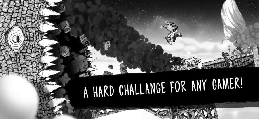 《蠕虫冲刺》又是一款跑酷游戏,不过不一样的是,这款横版跑酷游戏采用了黑白卡通风格,游戏的细节非常的精致,还有各种奇怪的生物飞过场景,让整个游戏有一种复古的感觉。