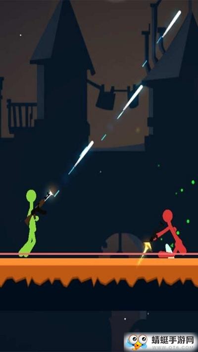 2、4名火柴人同时战斗,相互射击,武器会随掉落,包含了狙击枪、喷火器、冲锋枪等多种武器;