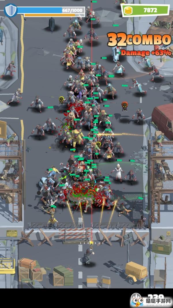 3、随着时间的推移,僵尸们会不断的进化,从而出现皮厚攻高的僵尸BOSS,它们会对你造成巨大的威胁;