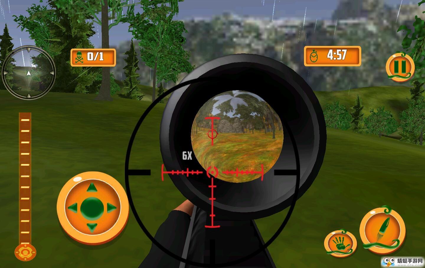 1、作为一名经验丰富的狩猎人,利用瞄准镜去射击更多的野生动物,赢得挑战。