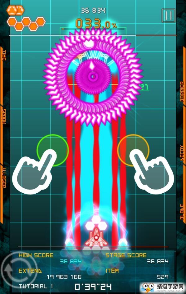 2. 游戏采用2D垂直弹幕设计,还有各种酷炫的射击特效,带给玩家一场精彩绝伦的视觉盛宴。