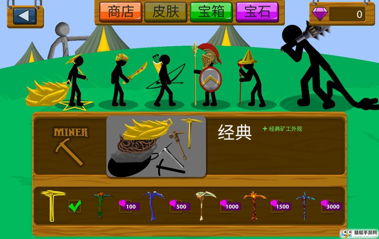 玩法我简单说一下,游戏类似于模拟经营、战斗的结合。同时也是一个塔防游戏,摧毁对手的雕像就可以获得胜利了。玩家可以雇佣矿工挖金矿获得金币,从而雇佣更多、更强大的兵种。前几个关卡都属于简单类型,就是为了让你解锁兵种的。我个人比较喜欢枪兵(应该是长枪或者矛),枪兵实力比较不错,可以单挑几个剑士,玩人海战术堆盾牌是一个比较无解的方法。也有特殊操作,就是控制枪兵,往前跑然后往后拉摇杆按攻击键就可以把自己的长枪扔出去,伤害非常高,大概在500左右,扔在对方雕像上面,前几关直接赢了,后面的也可以伤不少血。配置最好用剑士/枪兵/弓箭手,剑士完全就是吸引活力的,掩护枪兵/弓箭手到达对方阵营。数量大概为1:2:1。比如说10个剑士就要有4个枪兵(剑士占一格,枪兵占5格。)也可以用钻石购买一个神圣枪兵(我自己给起的名字),威力非常巨大,一个人应该能对付40个剑士,慢慢苟且的话,100个应该不成问题。比较难的就是最后一关,最后一关建议不要用剑士,就用枪兵和弓箭手,数量1:2。枪兵抗伤害,弓箭手输出。
