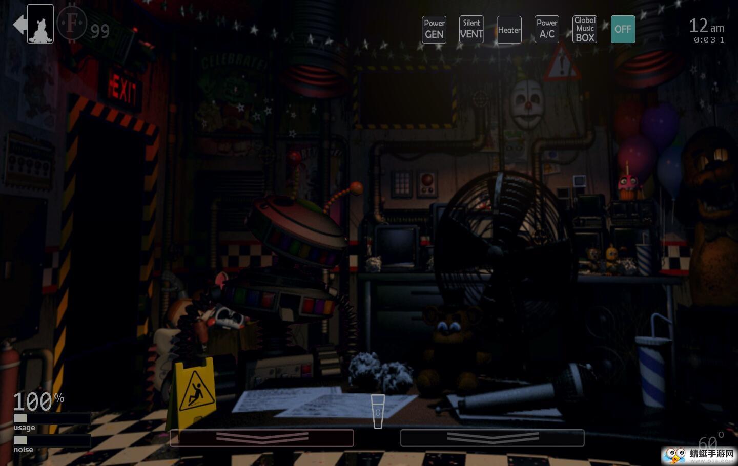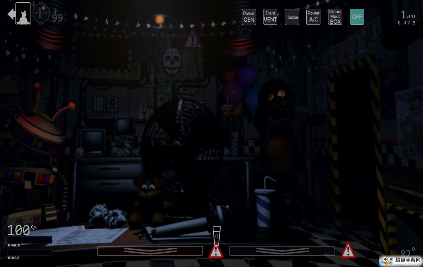 5、这款游戏相同的就是生存五夜,在右上角上,你会看到一个时间的显示,那是游戏内的时间法则,其次右下角的位置会出现一个危险的信号,所以这时候的你可以将闸道门关闭就可以了。