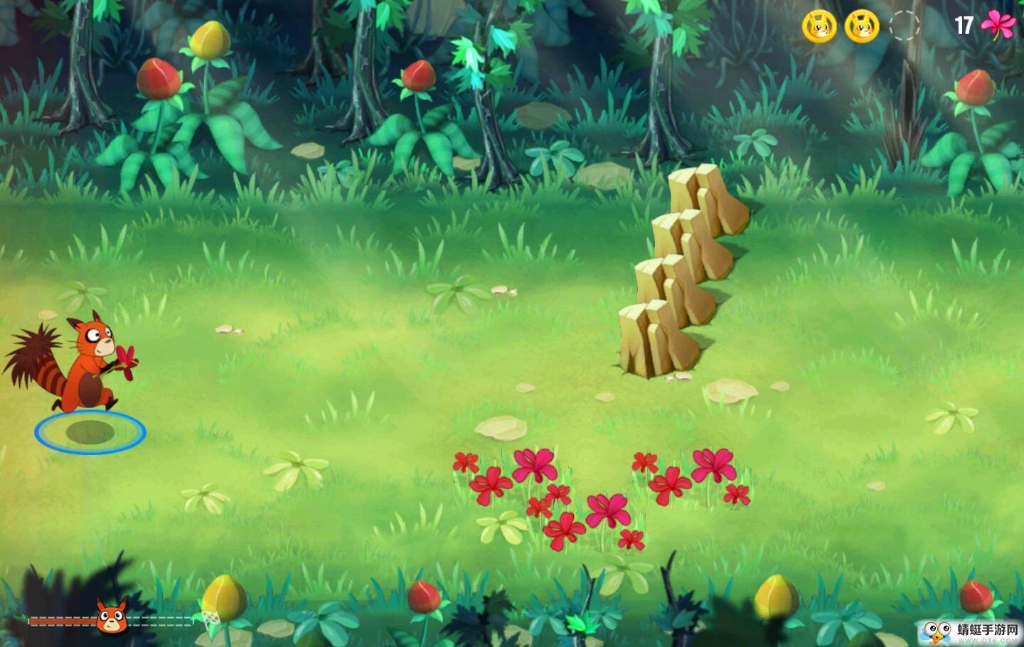 跑酷类游戏,小松鼠(也可能是狐狸)萌贱萌贱的,玩着感觉特别暖特别治愈,很有早些年 轻游戏的影子,吐槽一下吸铁石,你丫就不能给个花篮或者抱个大象去吸小花吗?森林里哪来的吸铁石?!神特么吸铁石( ̄⊿ ̄)