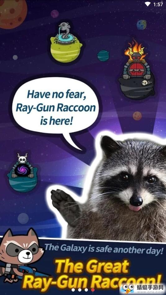 作为银河系的守护者不一定是个苦差事! Ray-Gun Raccoon将自动飞来寻找外星人射击,但是只要你想让他脱离危险,发射一些巨型火箭或使用特殊技能,你就可以控制。