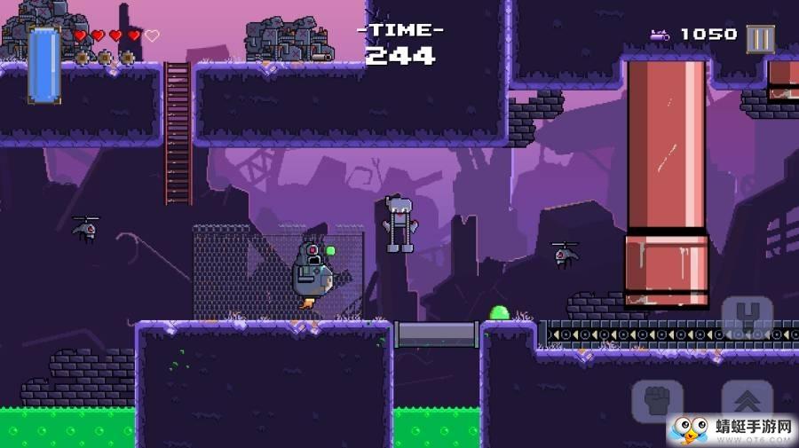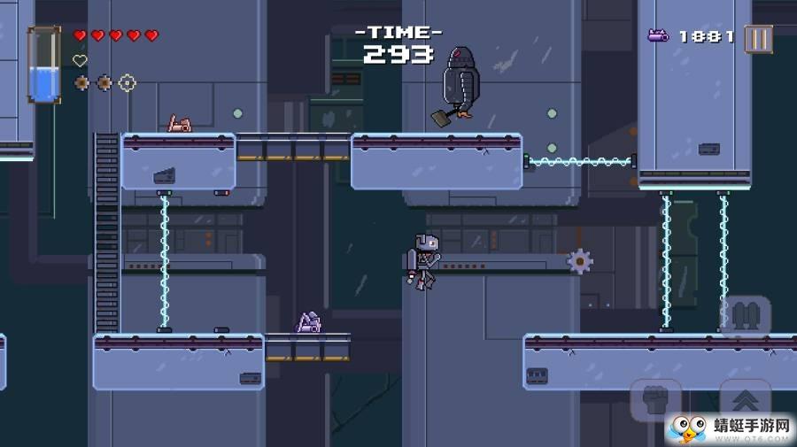 伸缩机器人游戏地点的细节被描绘在一个非常清晰,基于像素的游戏中。