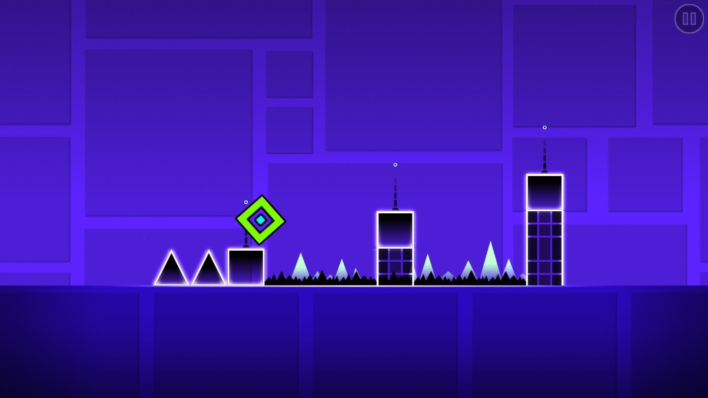 画面质感也特别棒,光影效果,背景色彩,还有三角和方块的几何质感简直绝了,方块在地面上滑动的那叫一个流畅,操作手感好到爆,节奏完全是配和着音乐来的。连不连网都能玩,我玩过这么多音游、横版过关游戏,对几何冲刺都完全挑不出一点毛病
